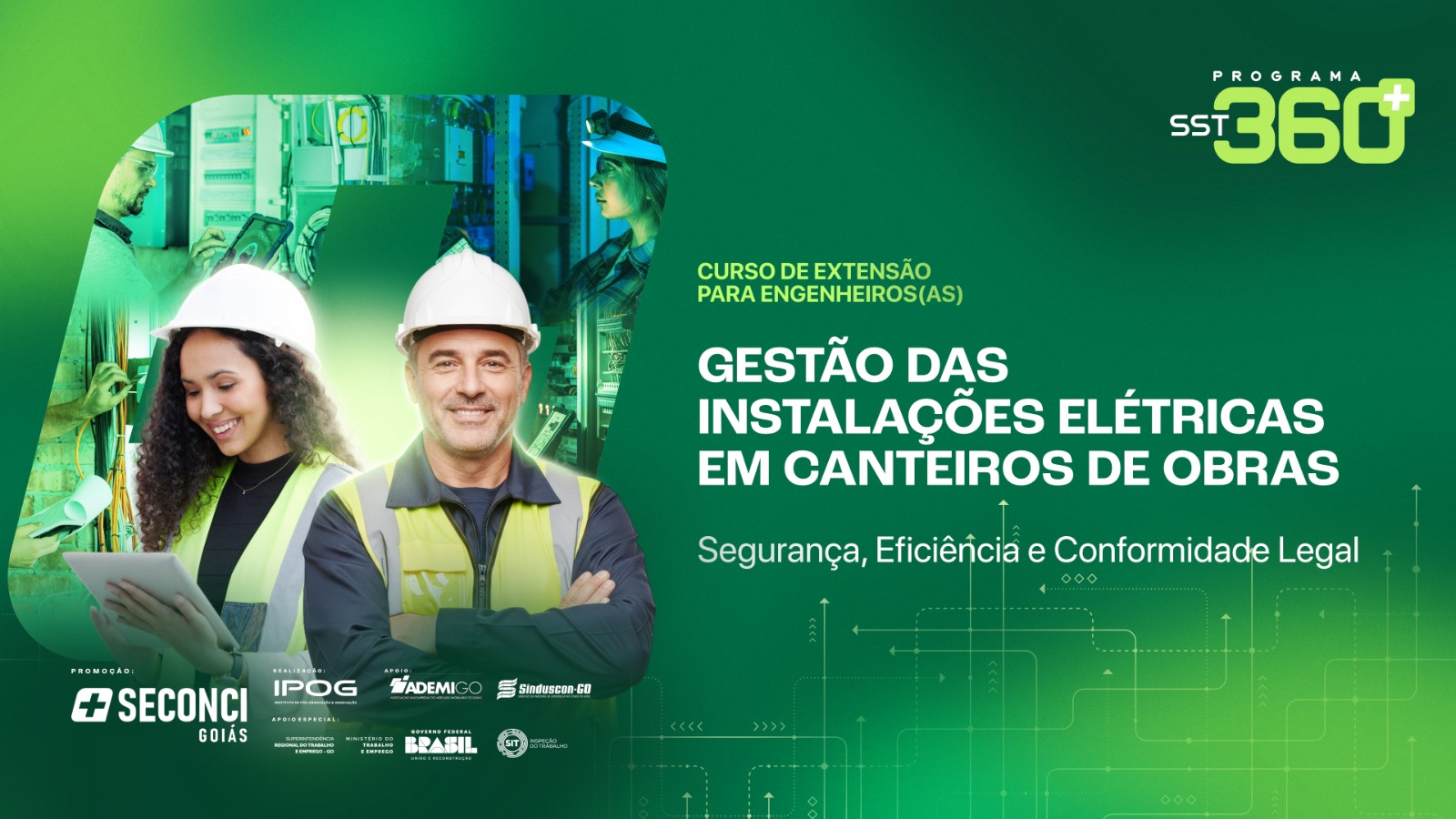 O Programa SST 360° – Programa de Educação Continuada em Saúde e Segurança do Trabalho na Construção, uma iniciativa do Seconci Goiás em parceria com Ademi-GO e Sinduscon-GO, anuncia mais um lançamento voltado à qualificação técnica da indústria da construção: o Curso “Gestão das Instalações Elétricas em Canteiros de Obras – Segurança, Eficiência e Conformidade Legal.” O curso será ministrado nos dias 10, 11, 24 e 25 de abril próximo, no IPOG – Instituto de Pós-Graduação e Graduação, em Goiânia, na modalidade presencial, com abordagem teórico-prática. Desenvolvido especialmente para coordenadores, engenheiros de obras e engenheiros de segurança do trabalho, o curso tem como objetivo capacitar profissionais para planejar, executar e inspecionar instalações elétricas temporárias com base nas exigências das normas NR-10, NR-18, NBR 5410, NBR 17018, NBR 16384 e demais legislações aplicáveis.